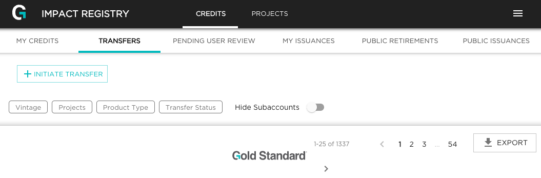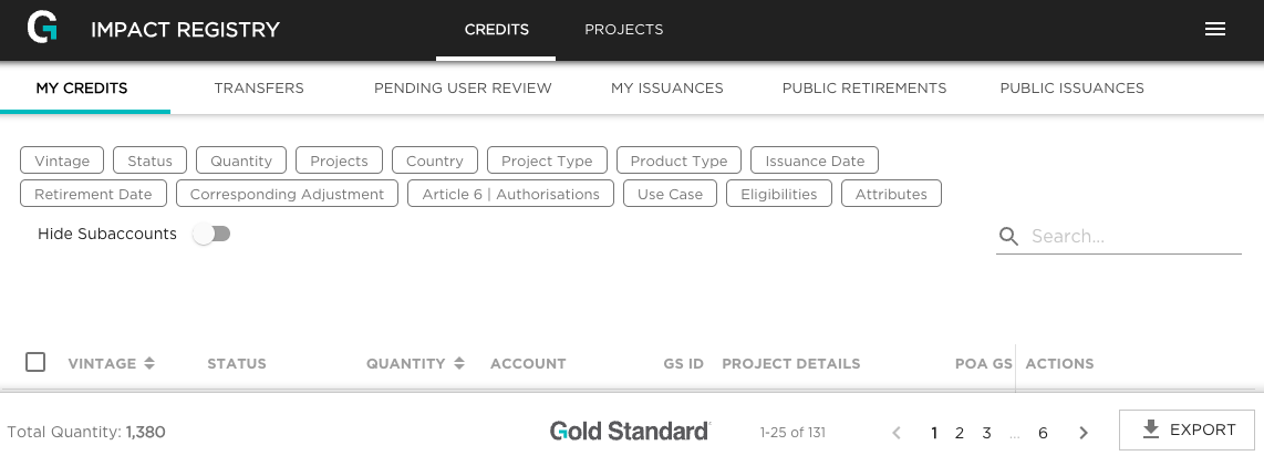The 'My Credits’ page of the GSF Registry should be used to track both retirements and transfers of credits within an account.