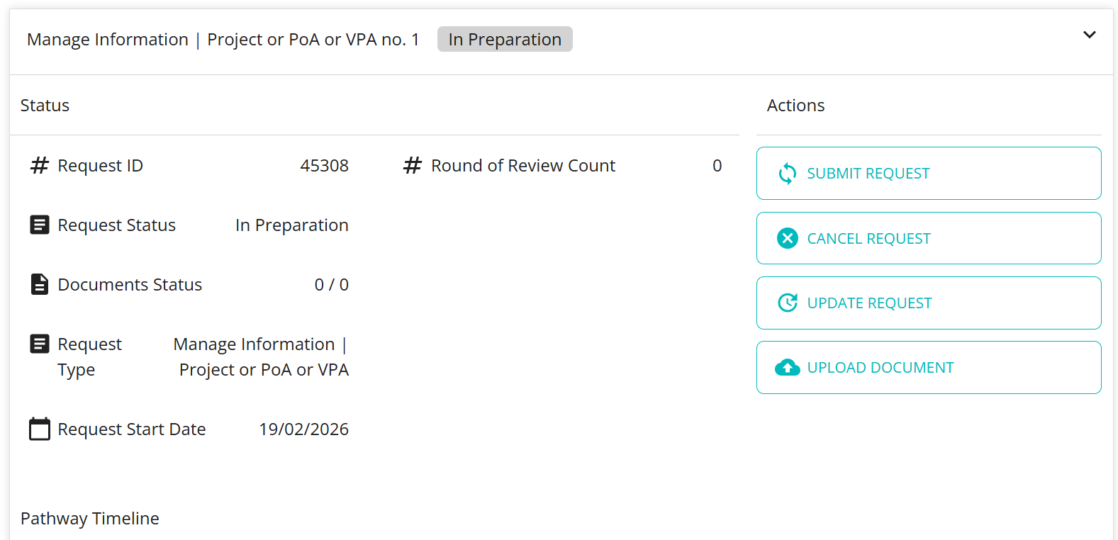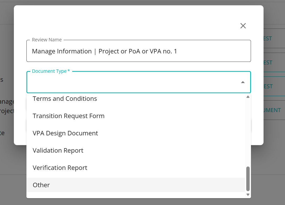 - Create a new 'Manage Information | Project or PoA or VPA' request within the project
